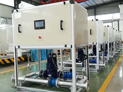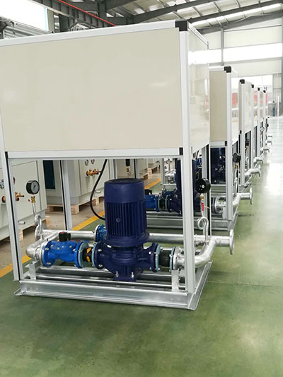 新風(fēng)防凍機組適用于北方地區(qū),包括風(fēng)溫度控制、防凍控制、以及各種連鎖保護系統(tǒng)。安裝在新風(fēng)機組、空調(diào)機組熱水的預(yù)熱盤管上,防止盤管溫度過低凍壞,同時也可防止送風(fēng)溫度過低。防凍機組與新風(fēng)機組預(yù)熱盤管串聯(lián)連接,防凍機組設(shè)置循環(huán)泵及相關(guān)自控措施,通過智能變頻控制水流量及相關(guān)聯(lián)合保護裝置,確保熱水盤管表面溫度不低于設(shè)定溫度,機組帶有缺水保護、低溫保護,風(fēng)閥控制,變頻控制。